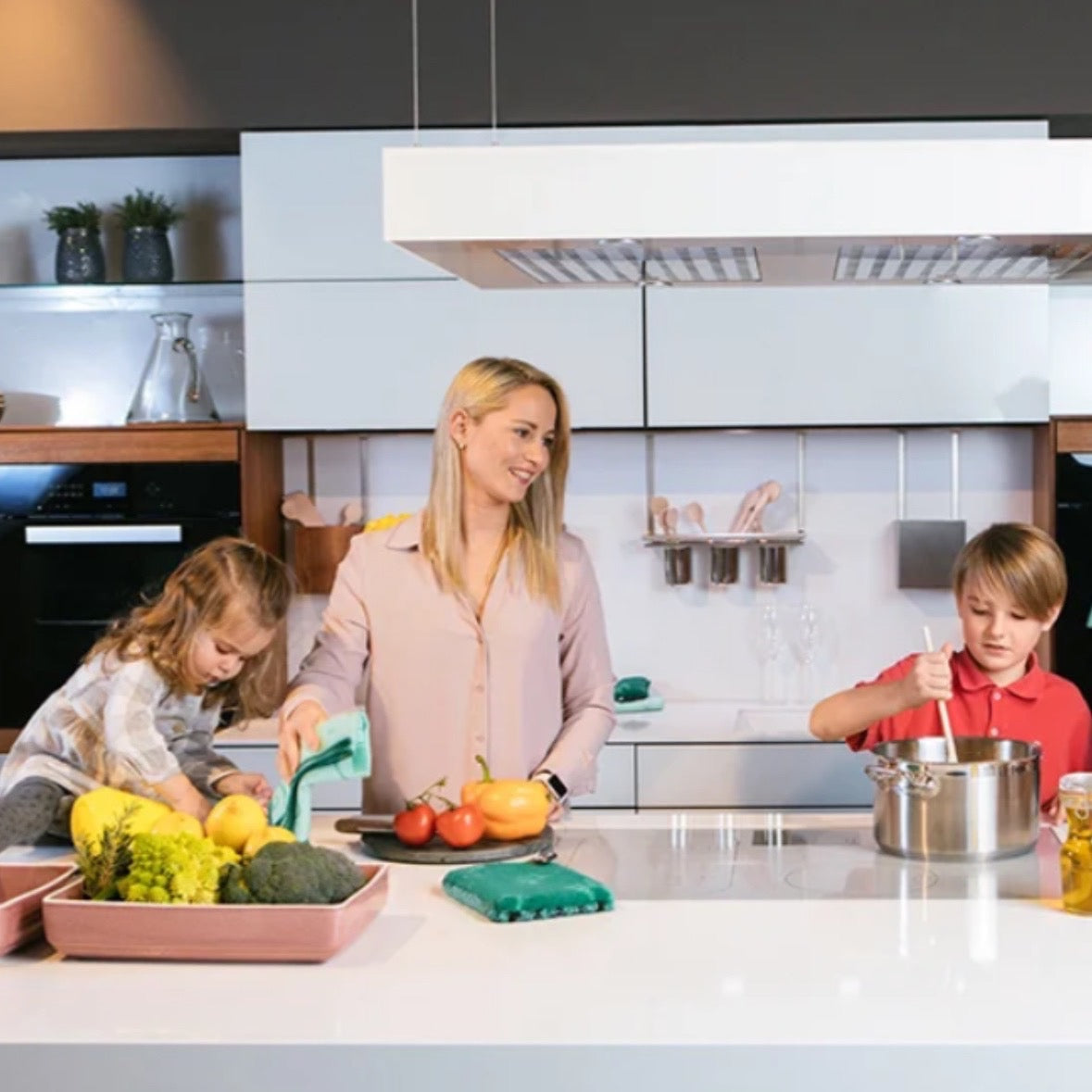 濡れた食器や鍋、フライパンをクロスの上に置いておくこともできます。
