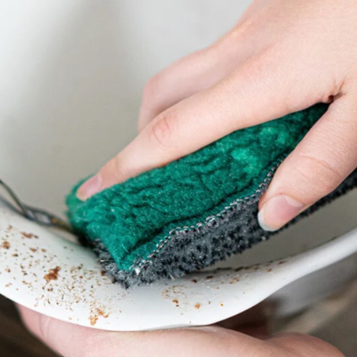・黒とグレーのファイバー面で頑固な汚れを落とします。